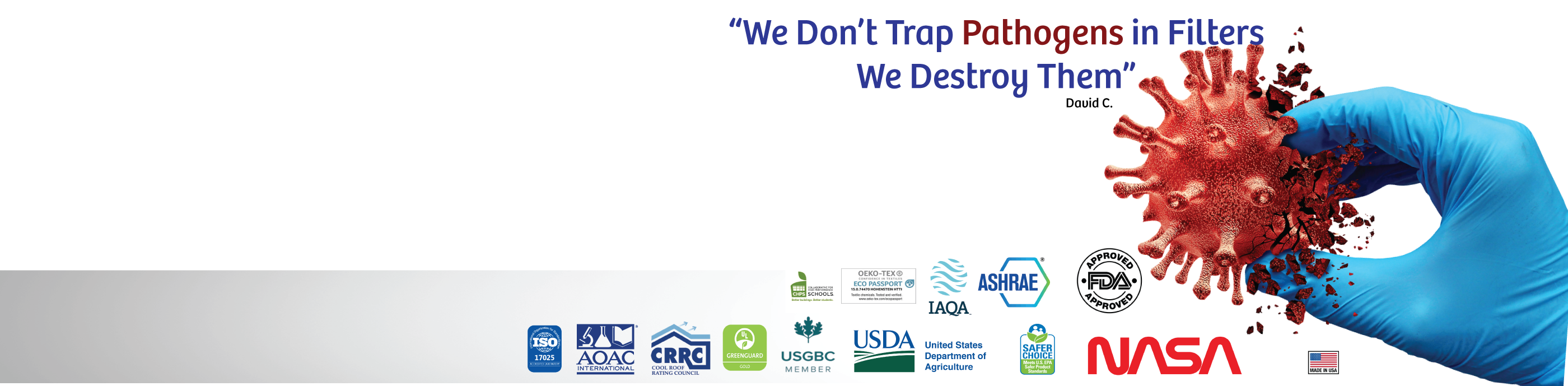 Utilizing nano titanium dioxide particles and NASA-developed technology, our air purification services provide pathogen-free environments without filters or manual labor. This means no pathogen or VoC's can survive in our protected environment.